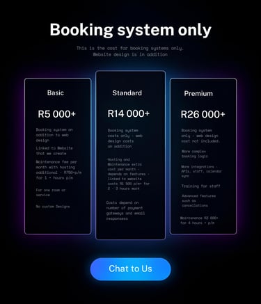 Need a new one? We’ll design the full package — website + bookings + payments — ready to go live in days, not weeks.