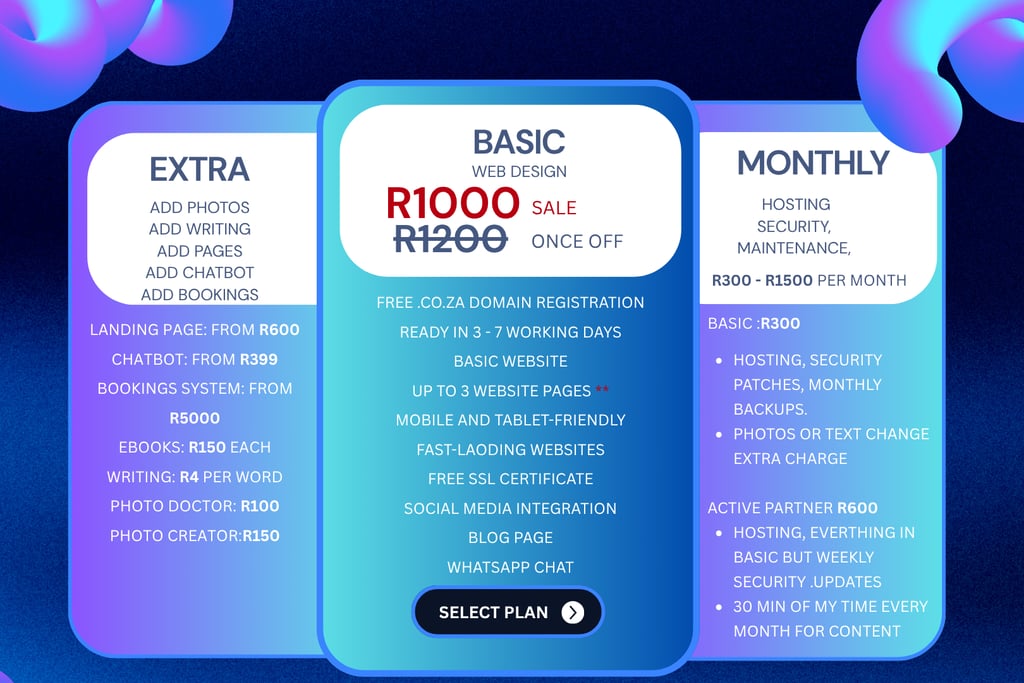 So, if you are looking for 'best web design for lawyers in South Africa', or 'restaurant web design, South Africa, we can help with an inexpensive option.